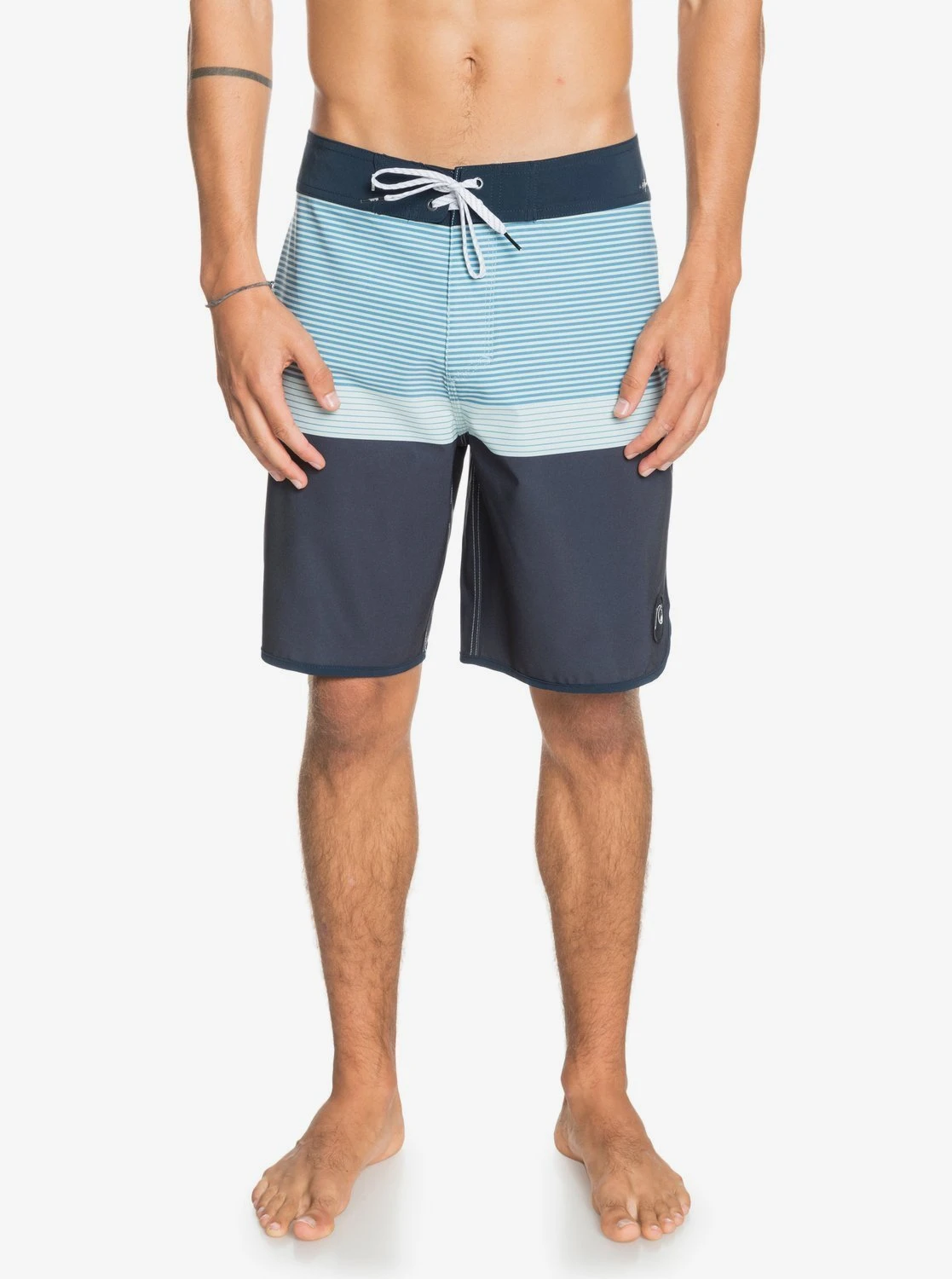 Highline Tijuana 19″ Boardshorts for Men Style : E Q Y B S04481 Features: Recycled Fabric: R E P R E V E™ traceable, recycled 4-way stretch polyester made from plastic bottles Dry Flight® water-repellent hydrophobic coating Outseam: 19″ outseam, mid-length Performance fit Performance fly Pockets: Pocket with flap Key bungee cord inside pocket Composition91% Polyester, 9% Elastane / Mens Boardshorts Highline Tijuana 19″ in Blue / 33 / Elastane/ Polyester / Quiksilver