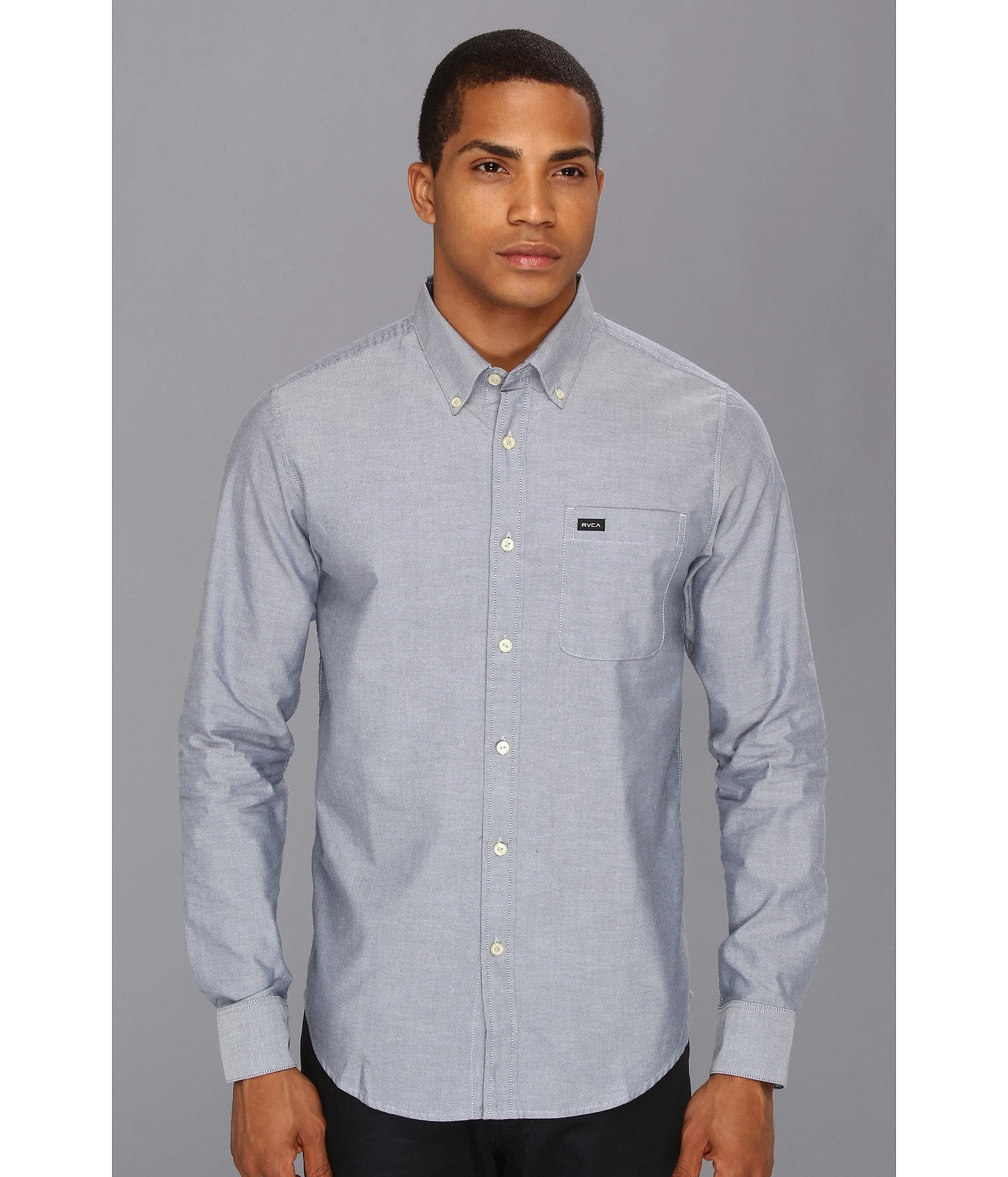 RVCA – That’ll Do Oxford L/S (Distant Blue) – Apparel: Pressed, pleasant, and proper. That’ll Do for us all with this RVCA button up. Comfortable cotton button up. Spread collar. Full button-up front closure. Long sleeves with buttoned cuffs. One chest pocket. RVCA logo at left chest. Shirttail hem. 60% cotton, 40% polyester. Machine wash cold, tumble dry low. Imported. Measurements: ; Length: 30 in ; Chest Measurement: 44 in ; Sleeve Length: 36 in ; Product measurements were taken using size MD. Please note that measurements may vary by size.