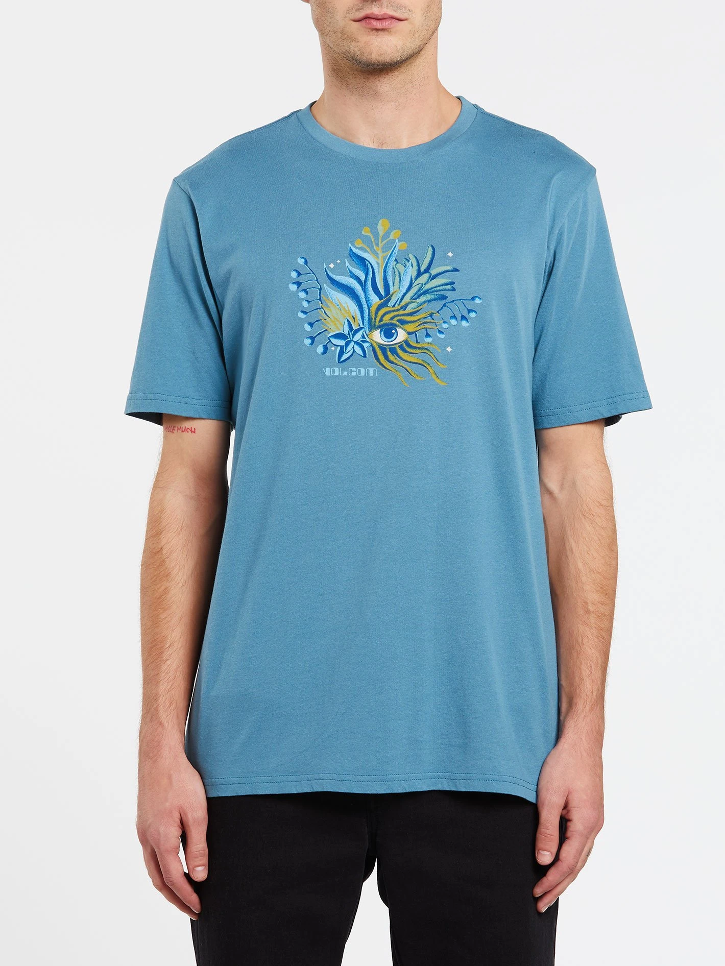 Medium Weight 100% Ring Spun Organic Cotton Modern fit Soft hand screenprint Exterior woven label Stripe printed neck tape, Printed neck label / Mens Shirt Kelpless in Blue / X- Large / Cotton / Volcom